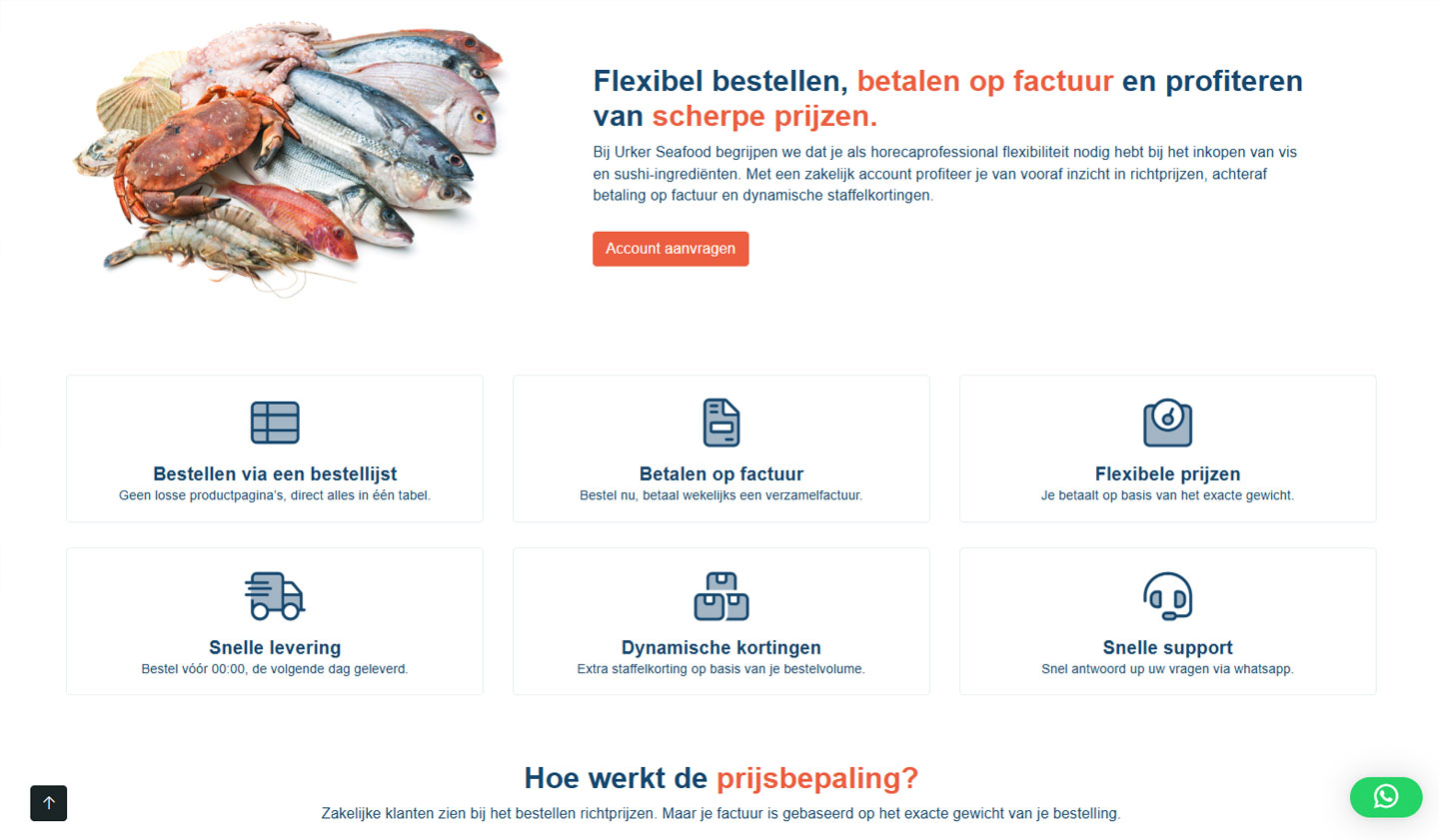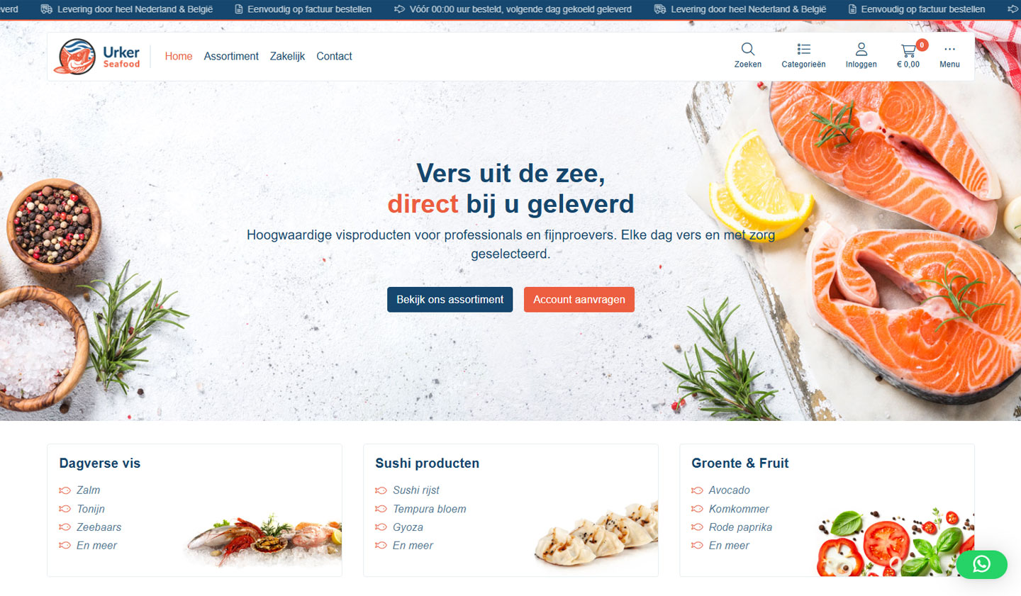 Meer informatieUrker Seafood ziet een sterke omzetgroei dankzij het nieuwe bestelplatform. Klanten bestellen sneller en eenvoudiger, wat resulteert in hogere conversie en minder handmatig werk. De koppeling met SnelStart versnelt facturatie en administratie. Vooral de belangrijke nichegroep van Aziatische afnemers is enthousiast over de duidelijke ordering-flow; daarom wordt de webshop binnenkort ook beschikbaar in het Chinees.